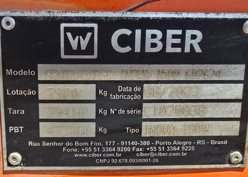 Quantidade: 01 unidade disponível Marca / Modelo: Ciber Inova 1500 Ano: 2022 (Data de fabricação: 08/2022) Valor: R$ 4.450.000,00 Estado: